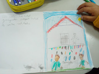 Alunos dos 2ºanos de escolaridade, terminaram o trabalho sobre a seguinte questão "Porque estavam os vizinhos de costas voltadas?"